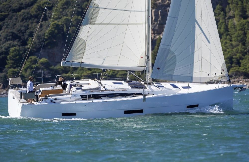 El Dufour 430 Grand Large es un velero que lo tiene todo: espacio, confort y un diseño pensado para que cada travesía sea pura experiencia. Con 13 metros de eslora y un casco de líneas modernas, es ideal para explorar las Rías Baixas en familia o con tu grupo de amigos.