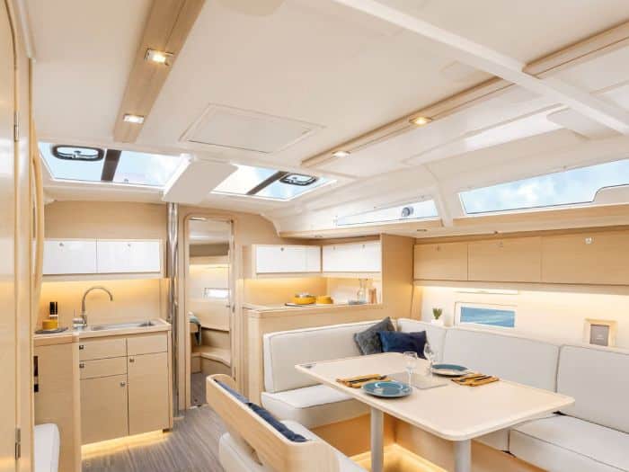 Por dentro, la luz lo inunda todo. El salón amplio, los acabados en madera clara y los detalles de calidad crean un ambiente acogedor, moderno y funcional. Un crucero robusto y versátil, perfecto para vivir el mar sin renunciar al confort.