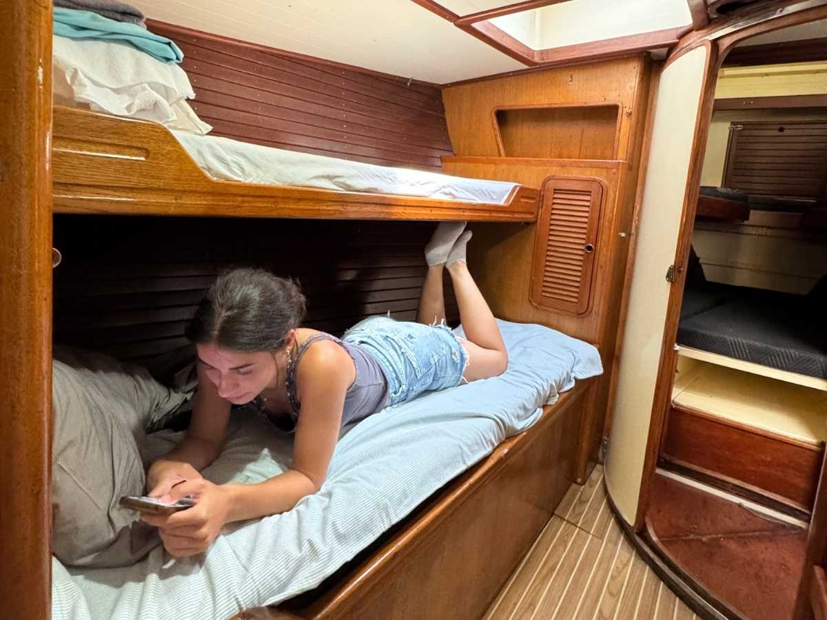 Este velero clásico dispone de capacidad para 12 personas y cuenta con 5 camarotes y 2 baños, perfecto para aquellos que buscan aventura sin renunciar al confort. Su generador, nevera y congelador garantizan total autonomía en el mar. Además, los más intrépidos podrán explorar el fondo marino con los equipos de buceo autónomo a bordo.